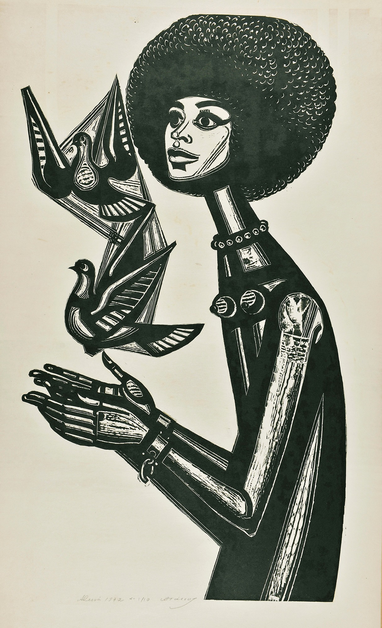 «Αντζελα Ντέιβις» (1972), Α. Τάσσος (Αλεβίζος Ανστάσιος), ξυλογραφία σε χαρτί (© Εθνική Πινακοθήκη-Μουσείο Αλεξάνδρου Σούτσου. Photo Credits: Σταύρος Ψηρούκης)
