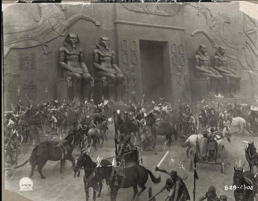 Οταν καθορίστηκε η τοποθεσία, ο Ντε Μιλ άρχισε να κατασκευάζει μια αρχαία πόλη γεμάτη αγάλματα του Φαραώ και της Σφίγγας, ένα σύνολο σκηνικών που θεωρούνται μοναδικά για την εποχή τους, επιστρατεύοντας το ταλέντο του Πολ Ιριμπέ, ενός γάλλου σκηνογράφου και σχεδιαστή εξειδικευμένου στο στυλ Art Deco.