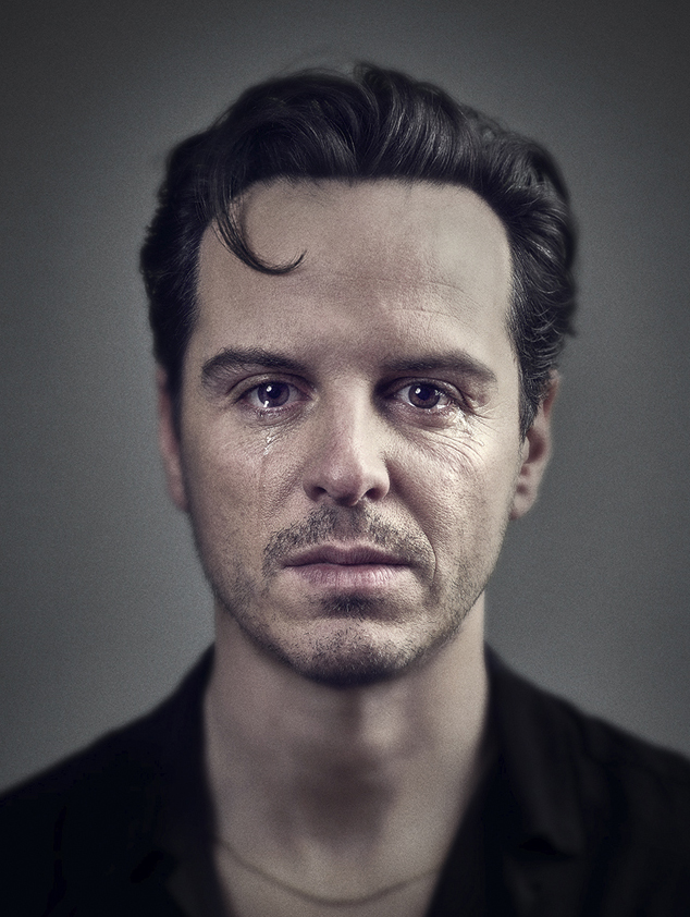 «Φωτογράφισα τον Αντριου στο “Flemings Hotel”, στο Μεϊφέαρ. Ηταν ένα όνειρο να τον φωτογραφίζεις και να είσαι κοντά του. Είναι από εκείνους τους ανθρώπους που δεν βάζουν εμπόδια ή απλά θέλουν φαίνεται στα πλάνα η “καλή τους πλευρά”. Αφού ολοκληρώσαμε τη φωτογράφιση εμβληματικών και ιδιόρρυθμων στιγμιότυπων, καθίσαμε για ένα ποτό και κουβέντα. Μιλούσα για σεβασμό στην τέχνη και ωμότητα στο φυσικό πρόσωπο. Το θέμα μετατράπηκε σε κλάμα/άντρες που κλαίνε σε εικόνες. Οπότε πρότεινα, καθώς ήμασταν ακόμα στημένοι, να προσπαθήσουμε να τραβήξουμε μια φωτογραφία με αυτές τις ωμές και ευάλωτες ιδιότητες. Τον ρώτησα τι σκέψη θα χρειαζόταν για να μπορέσει να βγάλει ένα δάκρυ. Αστειευόμενος τον ρώτησα αν έπρεπε να τον τσιμπήσω στο μπράτσο… κάτι που προκάλεσε ένα γέλιο, όχι το επιθυμητό αποτέλεσμα ούτε την καλύτερη ιδέα! Ο Αντριου κάθισε μπροστά μου κοιτάζοντας κάτω τα πόδια του. Ρώτησε “είσαι έτοιμος;” Σήκωσε το κεφάλι του και εκείνη τη στιγμή ένα δάκρυ κύλησε στο μάγουλό του και αποτύπωσα αυτή την αλμυρή στάλα την τέλεια στιγμή. Τράβηξα μόνο αυτή τη μία λήψη της εικόνας με το “δάκρυ” καθώς πραγματικά ένιωσα ότι εισέβαλα σε κάτι που περνούσε, παρόλο που αυτό το κάτι δημιουργήθηκε ειδικά για τη λήψη. Φαινόταν πολύ προσωπικό καθώς προφανώς σκεφτόταν κάτι οδυνηρό για να προκαλέσει το δάκρυ».