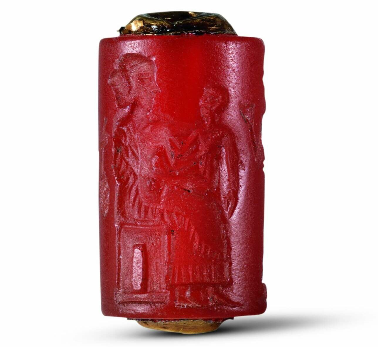 Ωστόσο, «γνωρίζουμε πολύ λίγα για τη βασίλισσα Πουάμπι», λέει ο Μπάμπκοκ· μόνο το όνομά της είναι γνωστό, επειδή εμφανίζεται σε μια κυλινδρική σφραγίδα από λάπις λάζουλι που βρέθηκε πάνω στο σώμα της. Ο επιμελητής της έκθεσης εξηγεί ότι οι κυλινδρικές σφραγίδες –οι περισσότερες όχι μεγαλύτερες από μια μπομπίνα κλωστής– χρησιμοποιήθηκαν από όλη την κοινωνία της Μεσοποταμίας, τόσο σαν προσωπική ταυτότητα, αλλά και ως τρόπος για την πιστοποίηση μιας επικοινωνίας ή του περιεχομένου, για παράδειγμα, ενός βάζου.