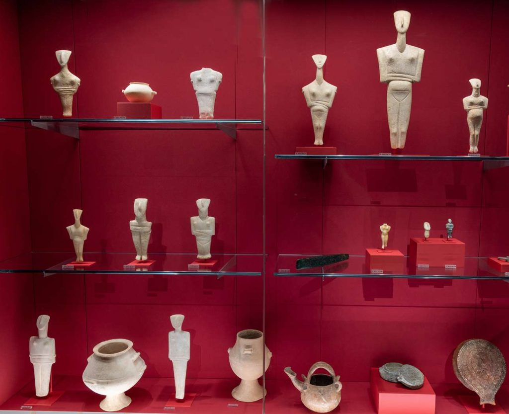 Η συλλογή περιλαμβάνει σχεδόν όλους τους κύριους τύπους κυκλαδικών μαρμάρινων ειδωλίων που αντιπροσωπεύουν την Υστερη Νεολιθική περίοδο, και εκτείνονται έως το τέλος της Πρώιμης Εποχής του Χαλκού.
