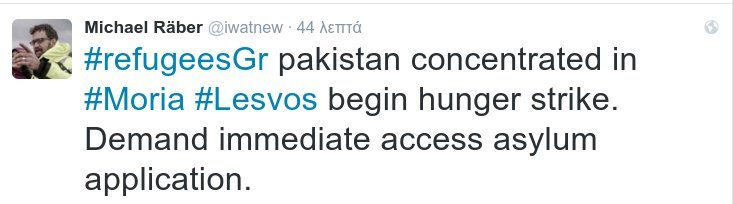 Σε ένα κέντρο φιλοξενίας, σε αυτό της Μοριάς στη Λέσβο, οι πακιστανοί πρόσφυγες ξεκίνησαν απεργία πείνας. Σύμφωνα με τον ακτιβιστή Mίχαελ Ράμπερ, που ανήρτησε την είδηση στο twitter, αίτημα των απεργών πείνας είναι η άμεση πρόσβαση στα αιτήματα ασύλου.