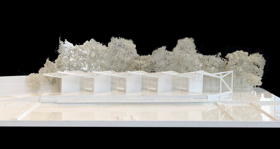 Η παρέμβαση αφορά στην εγκατάσταση στο νότιο τμήμα του αρχαιολογικού χώρου ενός περιπτέρου, το οποίο θα στεγάζει τέσσερις διαδραστικές οθόνες αφής, με πρόσβαση σε πολυμεσικές πληροφορίες (κείμενα, εικόνες, βίντεο, αναπαραστάσεις κ.ά.). Η σύνθεση περιλαμβάνει τέσσερις ορθογώνιες μονάδες καλυμμένες από κυματοειδές στέγαστρο.
