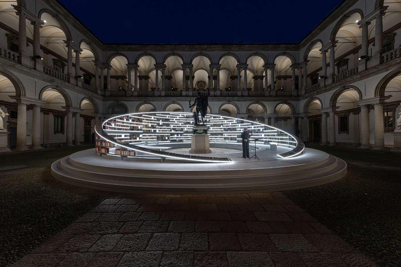 Στο πλαίσιο της Euroluce, εξάλλου, η βρετανίδα designer Ες Ντέβλιν δημιούργησε την εγκατάσταση «Library of Light», εμπνευσμένη από μια φράση του Ουμπέρτο Εκο: «Τα βιβλία είναι η πυξίδα του νου, δείχνουν αμέτρητους κόσμους που δεν έχουν ακόμη εξερευνηθεί». Το μνημειώδες περιστρεφόμενο φωτεινό γλυπτό της Ντέβλιν, διαμέτρου 18 μέτρων, είναι τοποθετημένο στην Κορτίλε ντ’Ονόρε, την αυλή της Πινακοθήκης της Μπρέρα του 17 αιώνα.