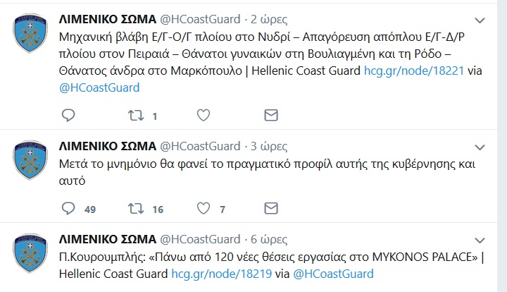 » 1. Η συγκεκριμένη δημοσίευση οφείλεται σε αστοχία της αυτόματης διασύνδεσης των Μέσων Κοινωνικής Δικτύωσης του Υπουργείου με τα Μέσα Κοινωνικής Δικτύωσης του Λιμενικού Σώματος. Αυτό αποδεικνύεται και από το γεγονός ότι το κείμενο που δημοσιεύτηκε ήταν μισό.