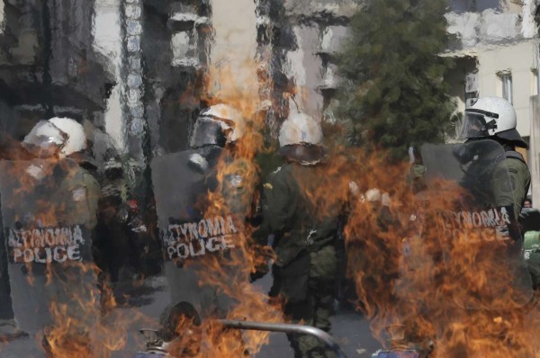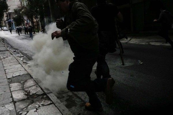 Δεν χρειάστηκε πολύ ώρα για να ανάψει η φωτιά ανάμεσα στους συγκεντρωμένους αγρότες και τους άνδρες των ΜΑΤ. Οι αγρότες πέταξαν καπνογόνα, ντομάτες και πέτρες προς το κτίριο και τους αστυνομικούς, οι οποίοι απάντησαν με χημικά.