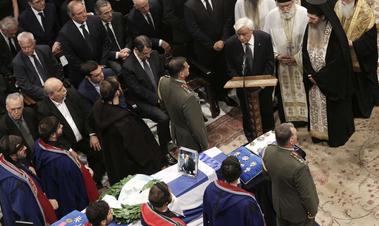 Στη νεκρώσιμη ακολουθία έδωσαν το παρών, μεταξύ άλλων, ο Πρόεδρος της Δημοκρατίας Προκόπης Παυλόπουλος, ο πρωθυπουργός Αλέξης Τσίπρας, ο πρόεδρος της Κυπριακής Δημοκρατίας Νίκος Αναστασιάδης, οι πρώην πρωθυπουργοί Κώστας Σημίτης, Αντώνης Σαμαράς και Γιώργος Παπανδρέου, σύσσωμη η κοινοβουλευτική ομάδα της ΝΔ, ο υπουργός Αμυνας Πάνος Καμμένος, η ηγεσία των Ενόπλων Δυνάμεων και της Δικαιοσύνης, εκπρόσωποι του πνευματικού και του επιχειρηματικού κόσμου της χώρας.