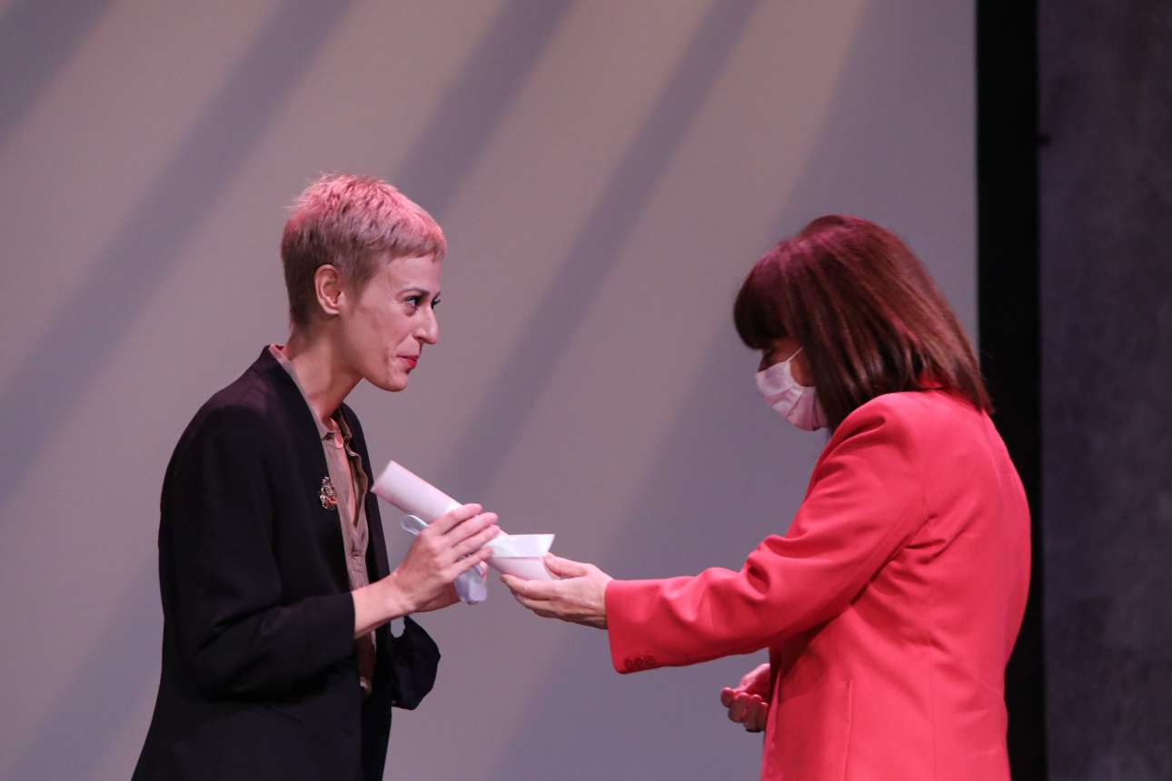 Η απονομή του βραβείου πραγματοποιήθηκε στο Εθνικό Θέατρο REX – Σκηνή Μαρίκα Κοτοπούλη, παρουσία της Προέδρου της Δημοκρατίας Κατερίνας Σακελλαροπούλου και της υπουργού Πολιτισμού, Λίνας Μενδώνη. Συνυποψήφιες της Δήμητρας Βλαγκοπούλου ήταν η Μαίρη Μηνά και η Ελένη Στεργίου.