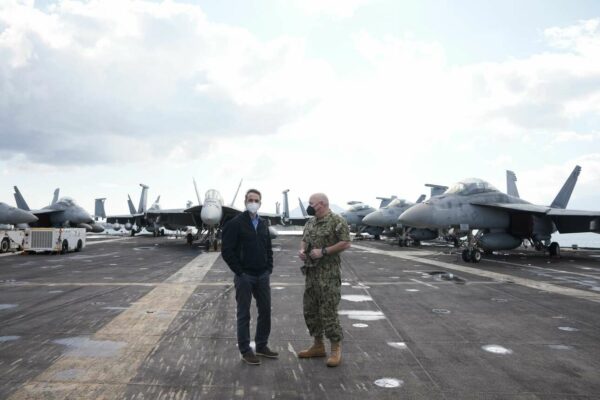 «Με πολύ μεγάλη χαρά βρίσκομαι, σήμερα, στη Σούδα επισκεπτόμενος το αμερικανικό αεροπλανοφόρο USS Dwight D. Eisenhower. H στρατιωτική συνεργασία Ηνωμένων Πολιτειών – Ελλάδος βρίσκεται σε εξαιρετικά υψηλά επίπεδα.