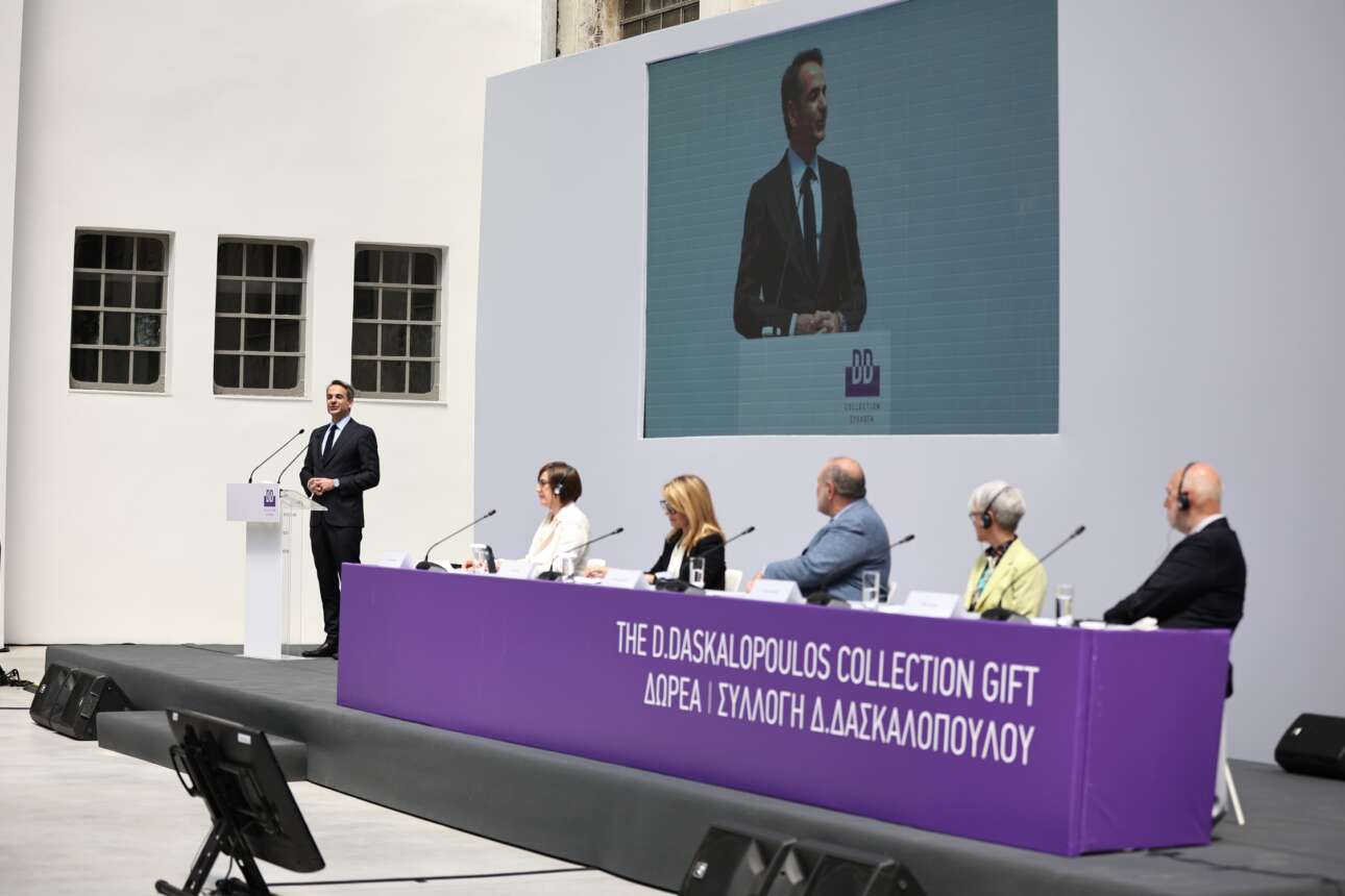 Τη δωρεά περισσότερων από 350 έργων της Συλλογής Δασκαλόπουλου σε τέσσερα δημόσια μουσεία, ανάμεσά τους και το Εθνικό Μουσείο Σύγχρονης Τέχνης (ΕΜΣΤ), χαιρέτισε ο Πρωθυπουργός Κυριάκος Μητσοτάκης, κατά τη διάρκεια εκδήλωσης στο κτίριο του παλιού Καπνεργοστασίου στη Λένορμαν.