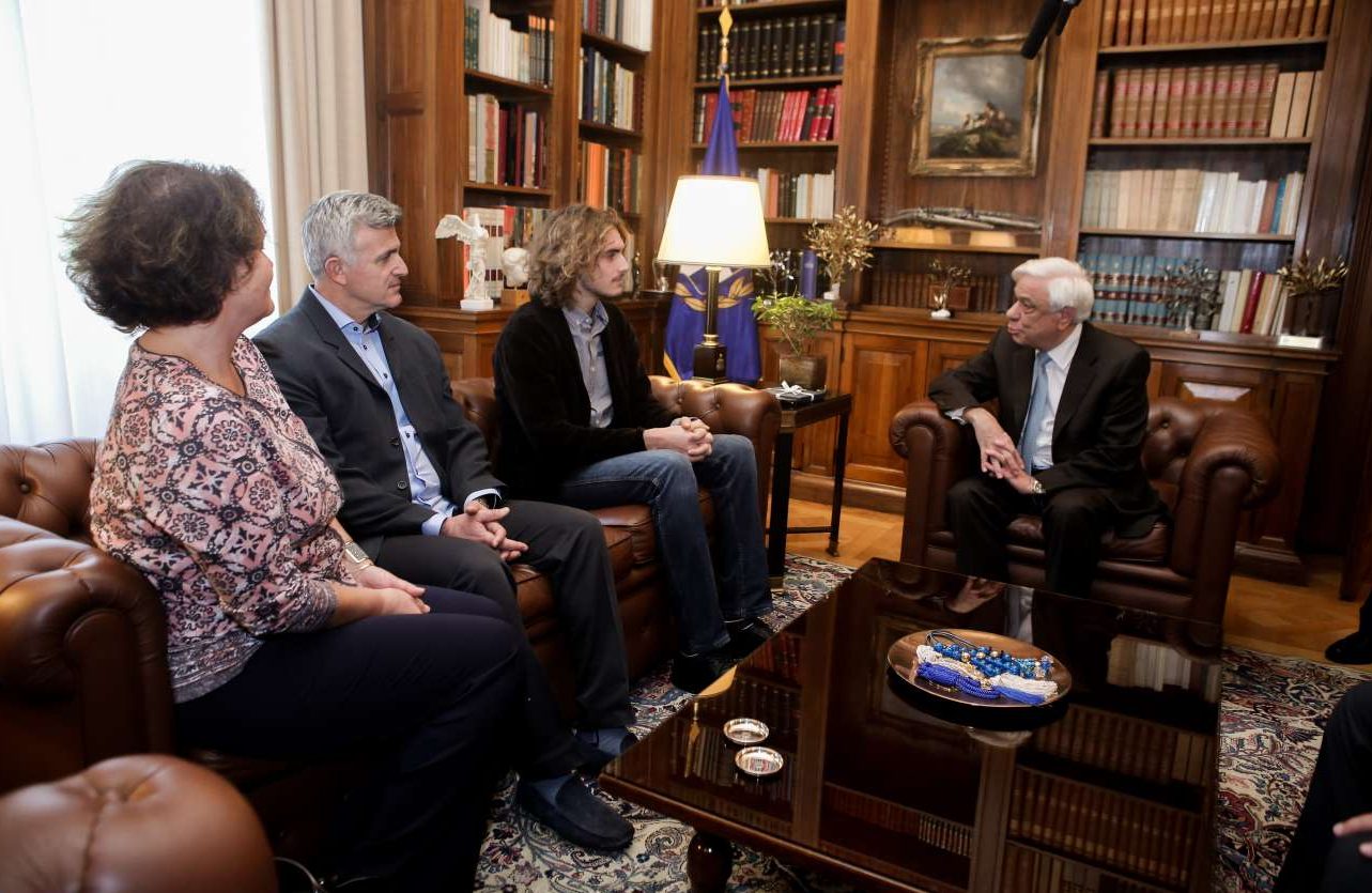 Με μια υπόσχεση εκπροσώπησης των εθνικών χρωμάτων στους Ολυμπιακούς Αγώνες του Τόκιο το 2020, αποχώρησε ο Στέφανος Τσιτσιπάς από το Προεδρικό Μέγαρο όπου έγινε δεκτός το μεσημέρι της Τετάρτης, μαζί με τους γονείς του, από τον Πρόεδρο της Δημοκρατίας Προκόπη Παυλόπουλο.