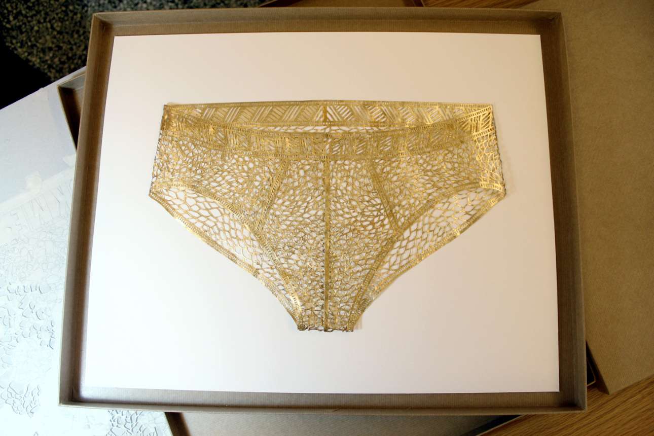 Κάθε φορά λοιπόν αναλαμβάνει ένα διαφορετικό πρότζεκτ, μία συλλογή. Μία από αυτές («Empty») ήταν η αποτύπωση καθημερινών αντικειμένων: Διάτρητο χαλί, πουκάμισο, καμπαρντίνα, κουρτίνα, εσώρουχο… Πολλοί τον ρωτούν όταν βλέπουν για πρώτη φορά τα έργα. Φοριούνται; Κάθε άλλο! Από τη στιγμή που αποτυπώνει αντικείμενα καθημερινής χρήσης σε διάτρητα σχέδια παύουν να έχουν χρηστικές ιδιότητες. Αποσπώνται από το φυσικό τους περιβάλλον, αποκτούν μία διαχρονικότητα, και, ανάλογα με τον παρατηρητή, αποκτούν κάθε φορά διαφορετικά αφηγήματα και ερμηνείες.