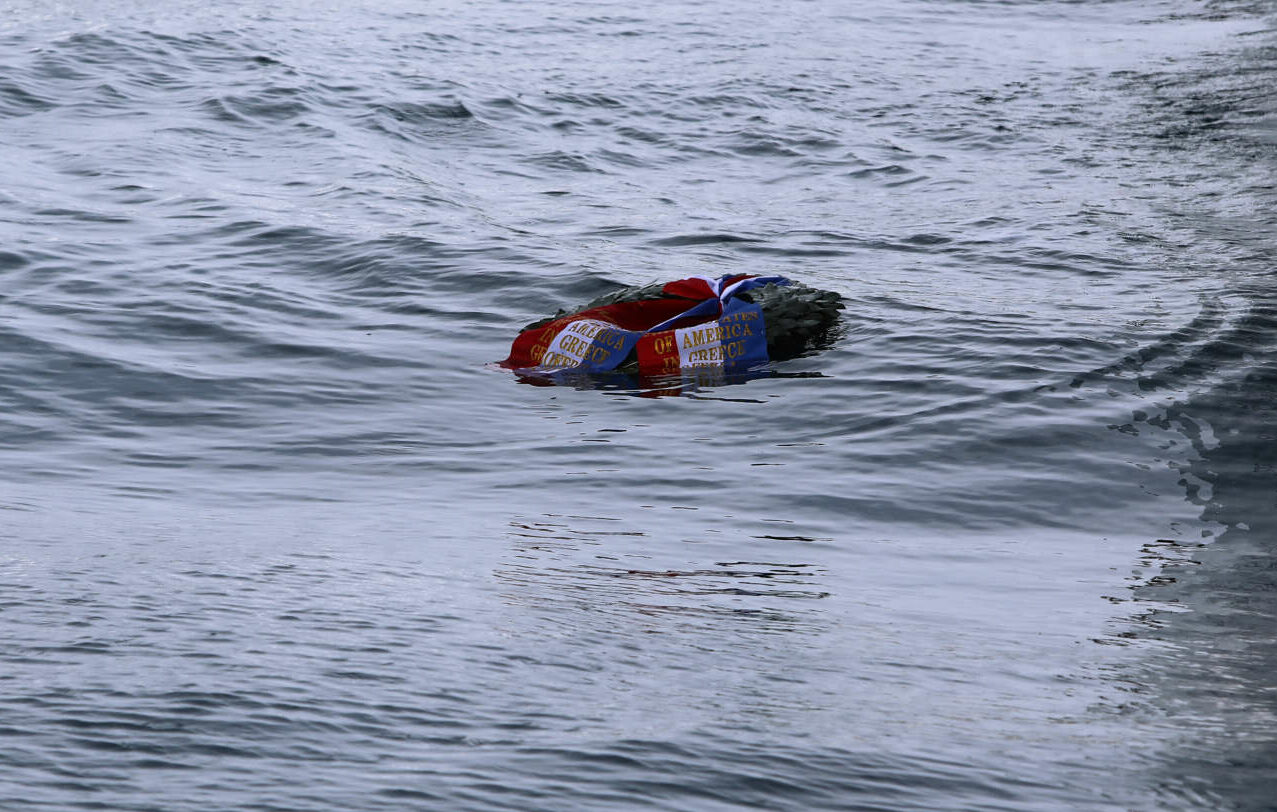 Κατά τη διάρκεια περιήγησης στα δύο σκάφη, ο κ. Πλακιωτάκης και ο κ. Πάιατ πραγματοποίησαν ρίψη στεφάνου προς τιμήν της συμπλήρωσης των 200 ετών από την Ελληνική Επανάσταση.