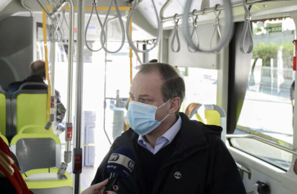 Ο υπουργός επιβιβάστηκε στο λεωφορείο προκειμένου να διαπιστώσει και ο ίδιος, ως επιβάτης, πώς ανταποκρίνονται τα εν λόγω οχήματα στις ανάγκες των αστικών συγκοινωνιών της Αττικής.