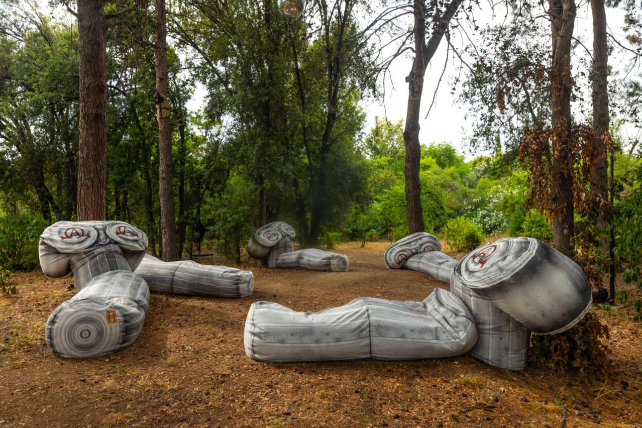 Τα έργα κατοικούν στο Πεδίο του Αρεως, σαν να ήταν εκεί από πάντα. Ο Ανδρέας Αγγελιδάκης με την Αναρχαιολογική Αναπαράσταση (2025) φαντάζεται κίονες που μπορείς δίπλα τους να ξαποστάσεις, σε ένα ξέφωτο που δεν έχεις προσέξει ποτέ πριν, προτείνοντας μια αντιεραρχική queer αρχαιολογία.