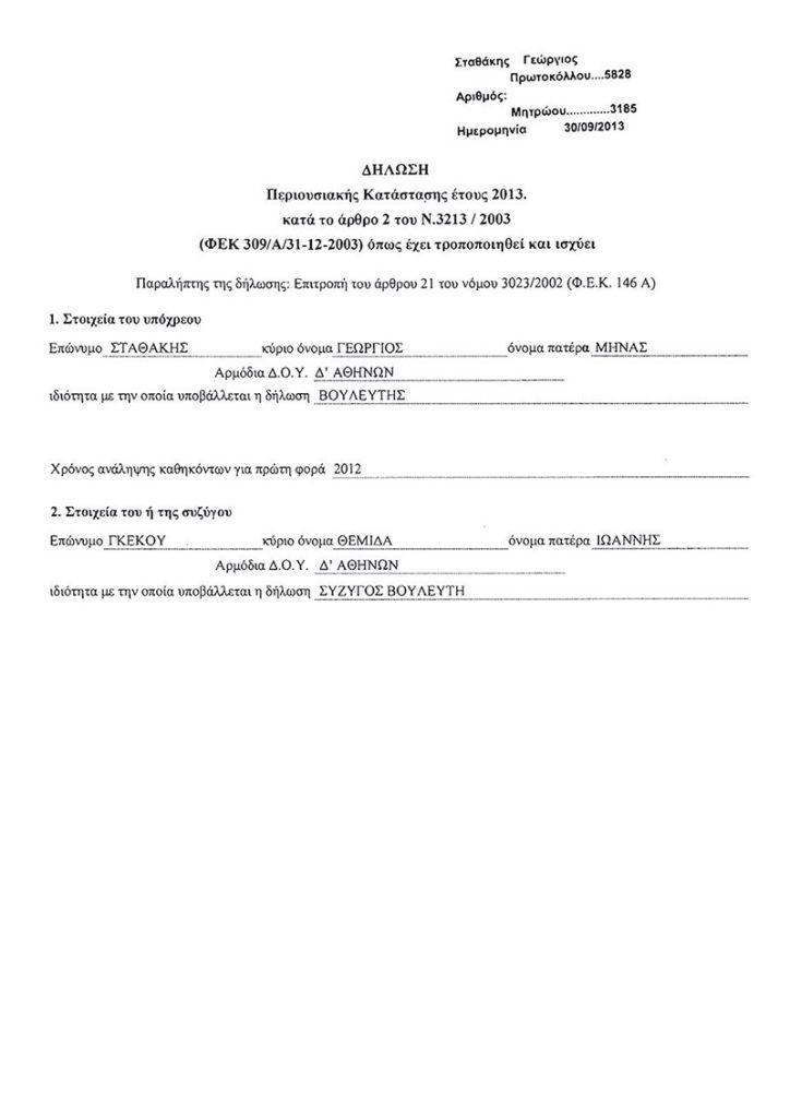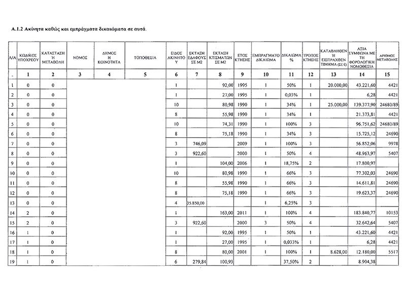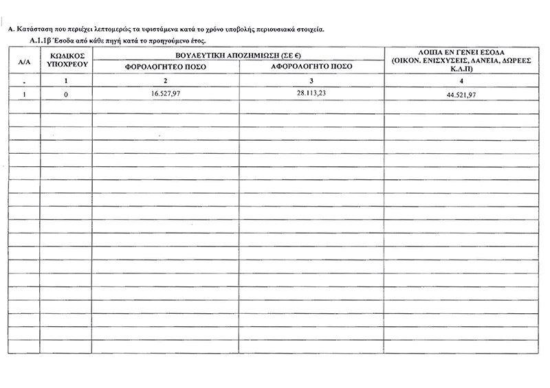 Διαβάστε εδώ αναλυτικά τις δηλώσεις πόθεν έσχες που αναρτώνται στη Βουλή για έναν μήνα.