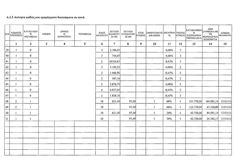 Η οικογένεια Σταθάκη δηλώνει 51 εγγραφές ακινήτων σε 51 ακίνητα σε Χανιά, Κορινθία, Αττική και Αχαΐα με τον Υπουργό να έχει στη δική του κατοχή τα 13 εξ αυτών.