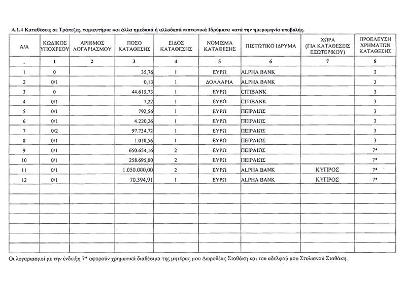 Να έχει κανείς τα λεφτά του στο εξωτερικό, ενώ τα έχει προηγουμένως φορολογήσει στην Ελλάδα δεν είναι παράνομο. Είναι, όμως, ηθικό; Ειδικά για έναν υπουργό της Αριστεράς. Με βάση το πόθεν έσχες του κ. Σταθάκη, οι καταθέσεις του ξεπερνούν το ένα εκατομμύριο και είναι σχεδόν αποκλειστικά σε κυπριακές τράπεζες.