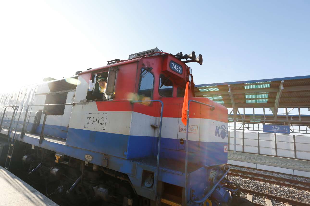 Τρένα στα πιο στρατιωτικοποιημένα σύνορα στον κόσμο, σε αυτά με τη Βόρεια Κορέα, έστειλε η Νότια για πρώτη φορά έπειτα από μια δεκαετία.