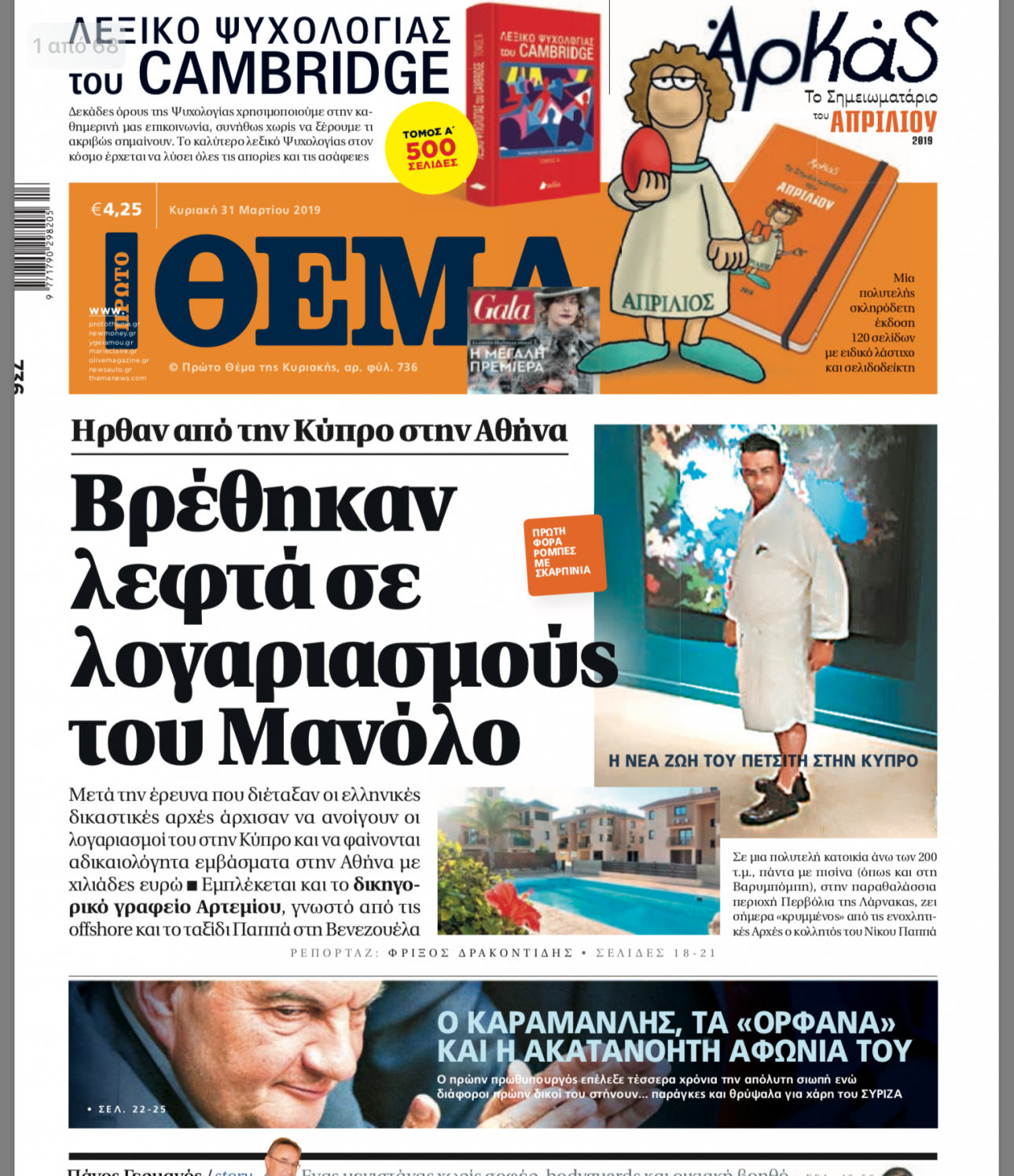 Στο πρωτοσέλιδο δημοσίευμα της εφημερίδας αναφέρεται ότι αυτές οι πληροφορίες προκύπτουν από τους πρώτους ελέγχους της Αρχής για το Ξέπλυμα Χρήματος, οι οποίοι παραγγέλθηκαν με εντολή της Εισαγγελέως του Αρείου Πάγου Ξένης Δημητρίου πριν από περίπου δύο μήνες. Οι έλεγχοι στους τραπεζικούς λογαριασμούς του «Μανόλο του Παππά» συνεχίζονται στην Ελλάδα και στη Κύπρο και επεκτείνονται, σύμφωνα με το δημοσίευμα, και στην Ελβετία. Επισημαίνεται δε ότι τα ποσά εντοπίστηκαν σε λογαριασμούς του Πετσίτη σε ελληνική συστημική τράπεζα και προέρχονται από κυπριακές εταιρείες στις οποίες, όπως φαίνεται από τα μέχρι στιγμής στοιχεία, δεν φαίνεται ότι παρείχε υπηρεσίες – για αυτό και θεωρούνται «αδικαιολόγητα».