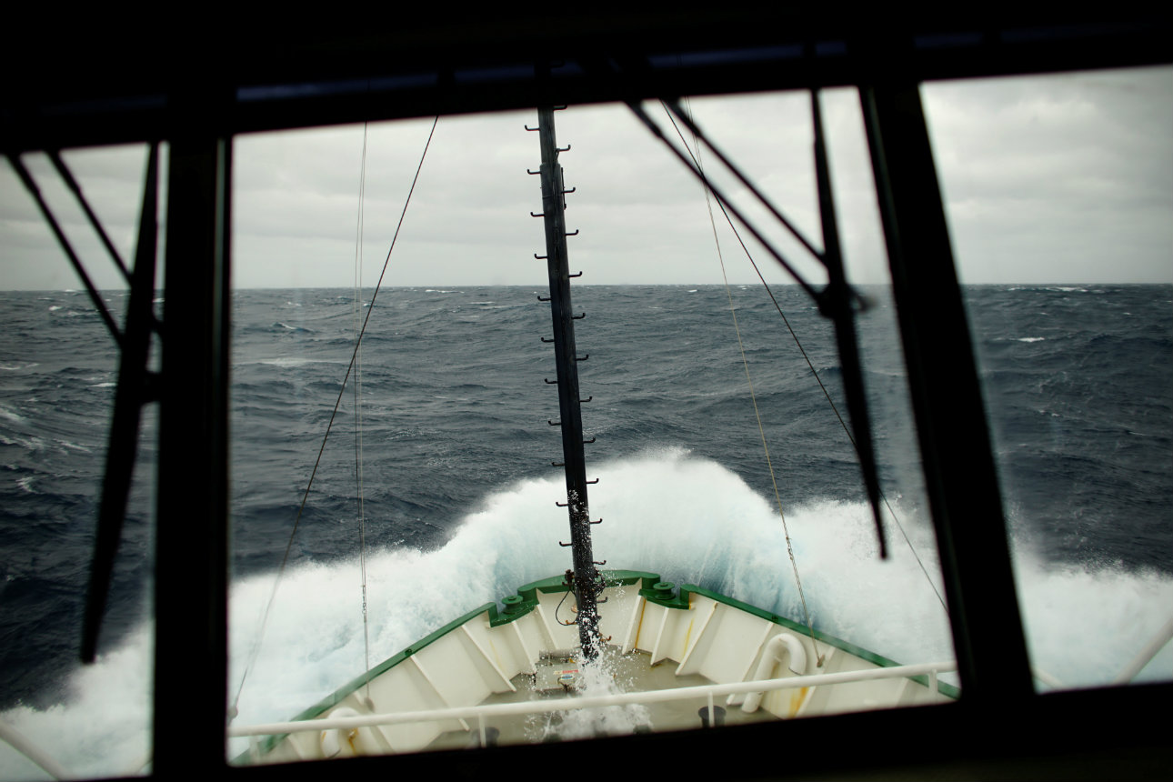 Οι επιβάτες του «Arctic Sunrise» είχαν ειδοποιηθεί ότι το πέρασμα θα ήταν άγριο, οπότε άρχισαν να δένουν τα πάντα μέσα στο πλοίο. Πήραν χάπια για τη ναυτία και άφησαν αναμμένα τα φώτα στις τουαλέτες για εκείνους που θα ένιωθαν άσχημα. Ο Μενεγκίνι αποφάσισε να μην πάρει τα χάπια. Αυτό ήταν το λάθος του: «Ένιωσα σα να είχα πέσει σε περιδίνηση», λέει.