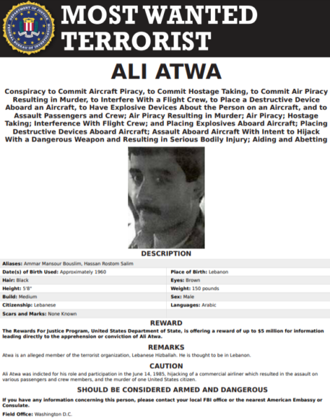 Η ιστορία του θανόντος τρομοκράτη είναι ενδιαφέρουσα, αφού οι Αμερικανοί δεν έπαψαν ποτέ να τον αναζητούν αφ’ ότου είχε σκοτώσει έναν στρατιωτικό των ΗΠΑ κατά τη διάρκεια αεροπειρατείας. Μάλιστα το FBI τον είχε επικηρύξει για το εντυπωσιακό ποσό των 5 εκατ. δολαρίων. Προφανώς ο Ατουα κρυβόταν κάπου στον Λίβανο, έχοντας την κάλυψη της Χεζμπολάχ. Με δεδομένο αυτό το παρελθόν δικαιολογείται και η καχυποψία απέναντι στην ανακοίνωση των σιιτών ισλαμιστών.