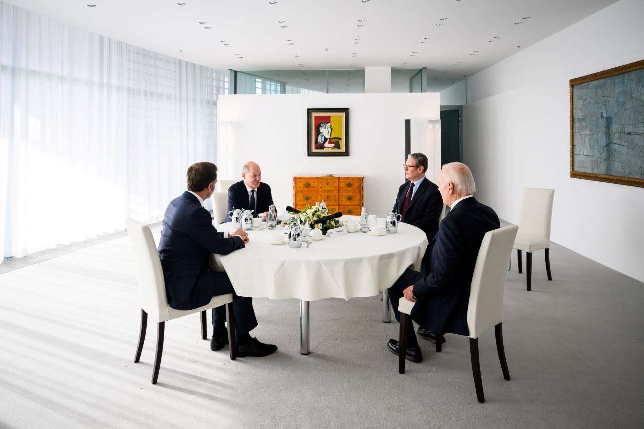 Στη κοινή δήλωση που δόθηκε στη δημοσιότητα μετά την τετραμερή συνάντηση στη γερμανική πρωτεύουσα ο Τζο Μπάιντεν, ο Εμανουέλ Μακρόν, ο Ολαφ Σολτς και ο Κιρ Στάρμερ δεσμεύτηκαν να «συνεχίσουν να υποστηρίζουν την Ουκρανία στις προσπάθειές της να εξασφαλίσει μια δίκαιη και διαρκή ειρήνη, βασισμένη στο διεθνές δίκαιο, συμπεριλαμβανομένου του Χάρτη των Ηνωμένων Εθνών και στον σεβασμό της κυριαρχίας και της εδαφικής ακεραιότητας».