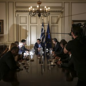 Ενας υπόκωφος χτύπος ακούστηκε. To κάδρο του Βλαντίμιρ Πούτιν μετακινήθηκε ελαφρώς προς τα δεξιά. Αν ο πρόεδρος μπορούσε να κοιτάξει κάτω από την κορνίζα, θα έβλεπε τον Δημοσθένη Λιακόπουλο να χτυπάει το κεφάλι του στον τοίχο. Ρυθμικά, όπως το σήμαντρο στον τάφο του γέροντα Παϊσιου.
