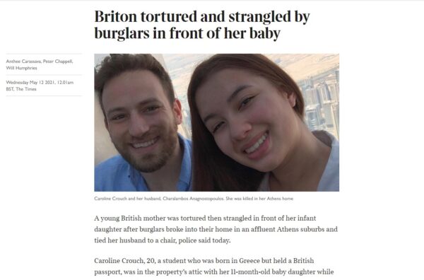 «Βρετανίδα βασανίστηκε και στραγκαλίστηκε από διαρρήκτες μπορστά στο παιδί της έγραψαν οι λονδρέζικοι Times.