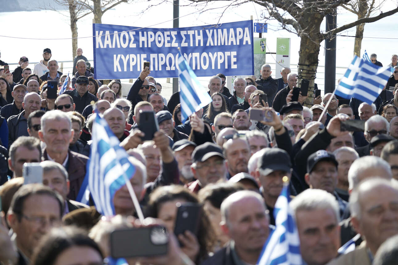 «Αισθάνομαι μεγάλη τιμή που είμαι ο πρώτος έλληνας Πρωθυπουργός που επισκέπτεται τη Χειμάρρα», είπε ο Κυριάκος Μητσοτάκης και ευχαρίστησε τα μέλη της μειονότητας που σε δύσκολα χρόνια κατάφεραν –όπως υπογράμμισε– να κρατήσουν τη φλόγα του Ελληνισμού και τη Ορθοδοξίας άσβεστη μέσα στην καρδιά τους.