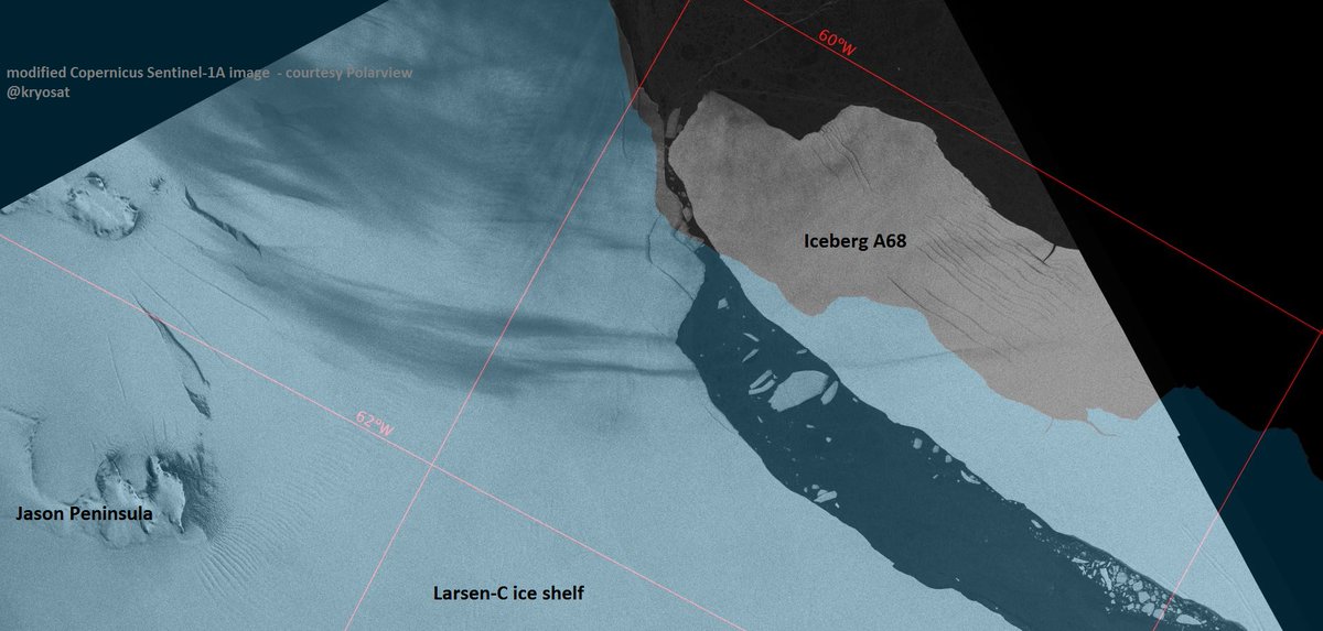 Οι επιστήμονες είχαν εντοπίσει εδώ και μια δεκαετία μία ρωγμή να σχηματίζεται στην κρηπίδα πάγου Larsen C στην Ανταρκτική Χερσόνησο, μια πλάκα πάγου που επιπλέει στο άκρο της Χερσονήσου, απέναντι από το νότιο άκρο της Νοτίου Αμερικής. Τον περασμένο Ιούλιο η ρωγμή έφτασε από την άκρη του πάγου από τον οποίο ξεκίνησε στην άλλη άκρη, δημιουργώντας έτσι ένα από τα μεγαλύτερα παγόβουνα που έχουν καταγραφεί ποτέ. Τα τελευταία τέσσερα χρόνια η ρωγμή επιτάχυνε την πορεία της καλύπτοντας συνολικά 200 χλμ.
