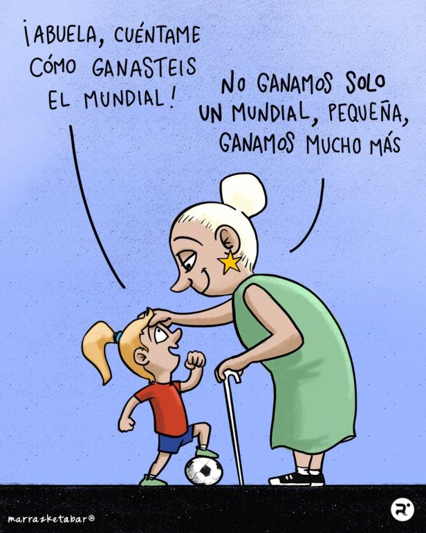 «Γιαγιά, πες μου πώς κέρδισε η ομάδα σου το Παγκόσμιο Κύπελλο» έγραφε μια εικονογράφηση που δημοσιεύθηκε στα μέσα κοινωνικής δικτύωσης από την γκολκίπερ των «κόκκινων», Μίσα Ροντρίγκες, την Παρασκευή. Η γιαγιά απαντά: «Δεν κερδίσαμε μόνο το Παγκόσμιο Κύπελλο, μικρή μου. Κερδίσαμε πολλά περισσότερα».