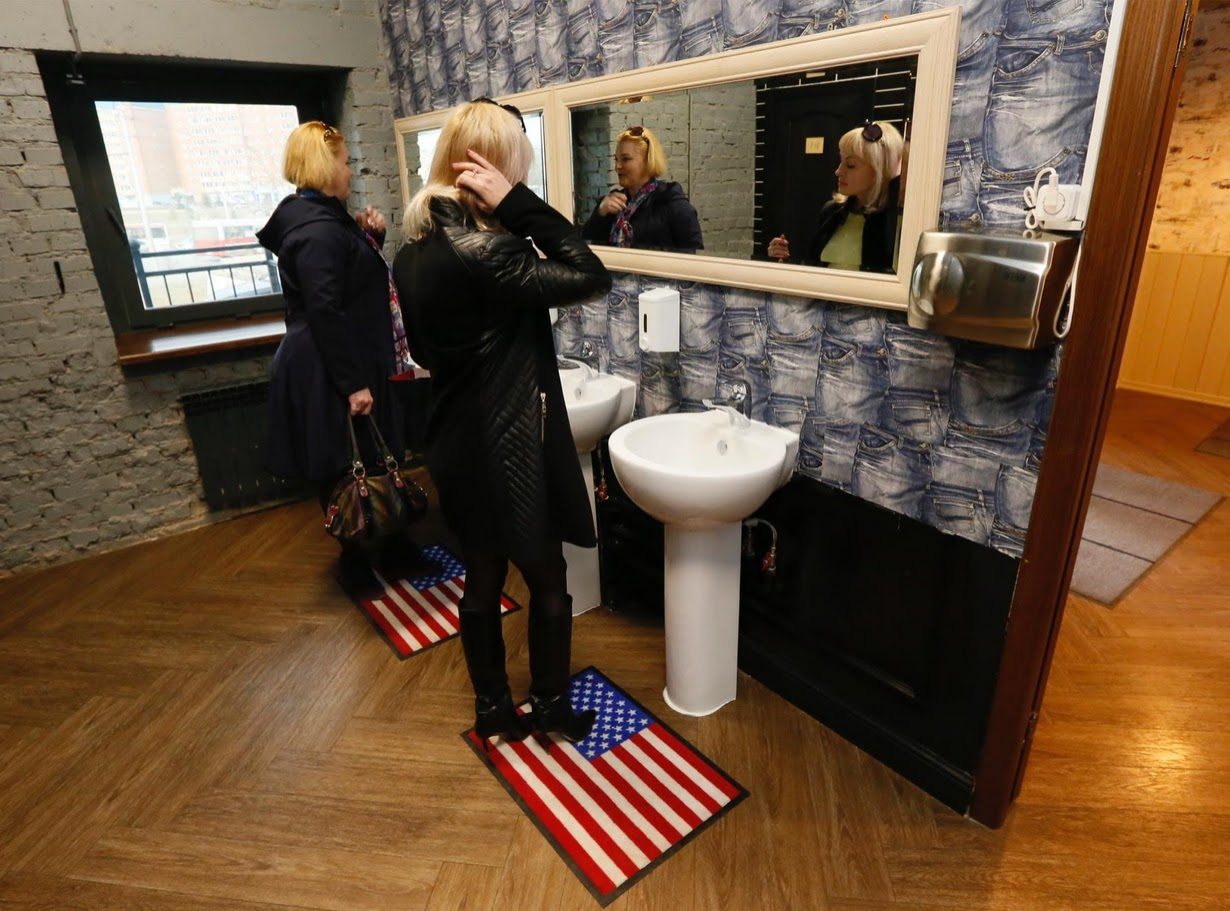 Οπως άλλωστε και προς τους ηγέτες άλλων μεγάλων δυνάμεων. Στο «Πρεζιντιέντ καφέ» -το καφέ του Προέδρου- τα πατάκια μπροστά από τους νιπτήρες αναπαριστούν την αστερόεσσα ενώ το χαρτί τουαλέτας κοσμείται από τη χαμογελαστή μορφή του αμερικανού προέδρου Μπαράκ Ομπάμα.