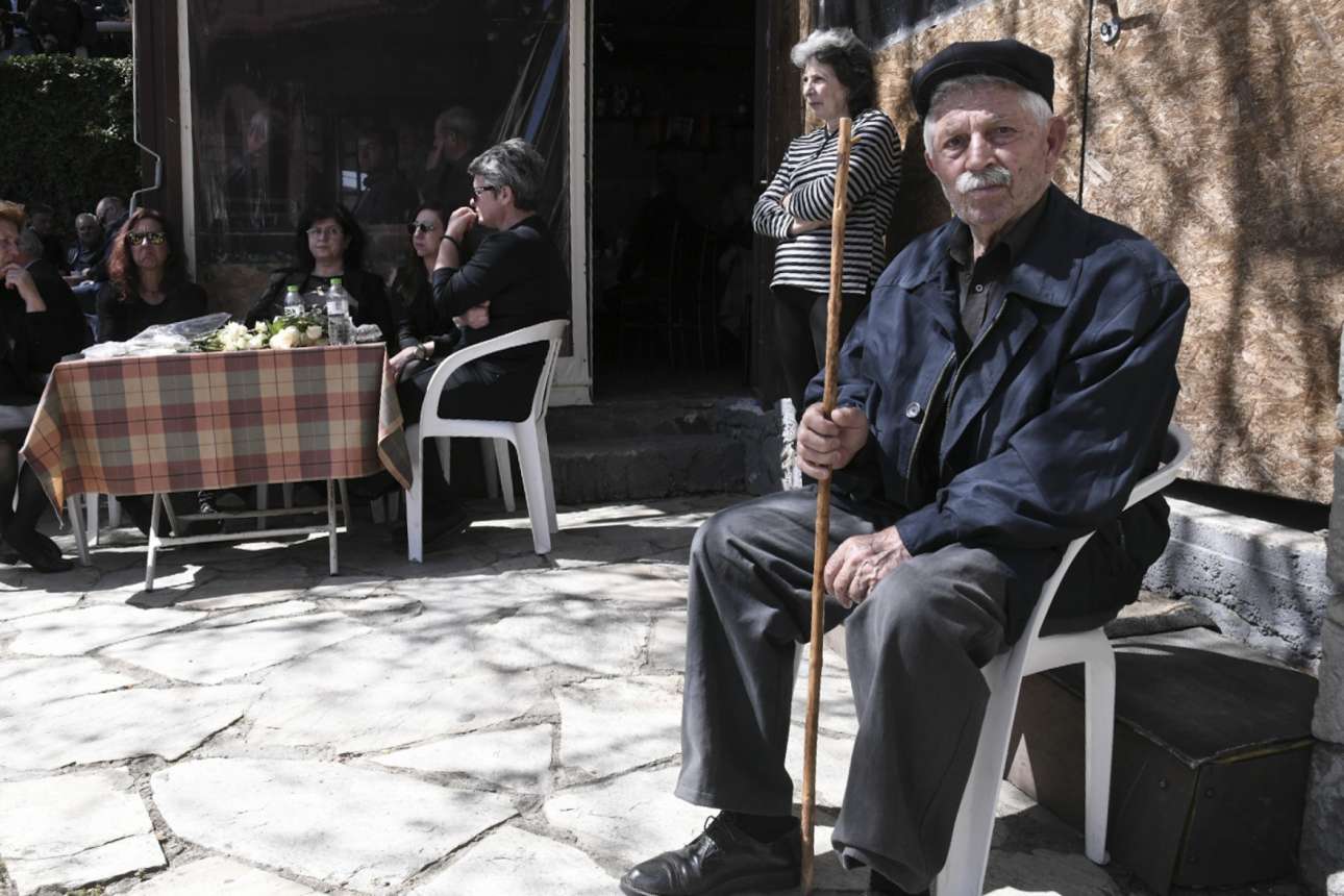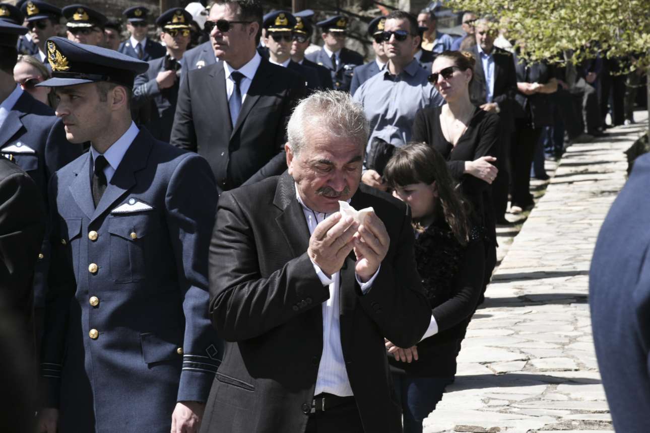 Οι σημαίες, στην ιδιαίτερη πατρίδα του σμηναγού κυματίζουν μεσίστιες. Από τις 10.30 το πρωί, η σορός του είχε τεθεί σε λαϊκό προσκύνημα στην εκκλησία του χωριού, ενώ στις 14:00 το μεσημέρι ξεκίνησε η τέλεση της νεκρώσιμης ακολουθίας.