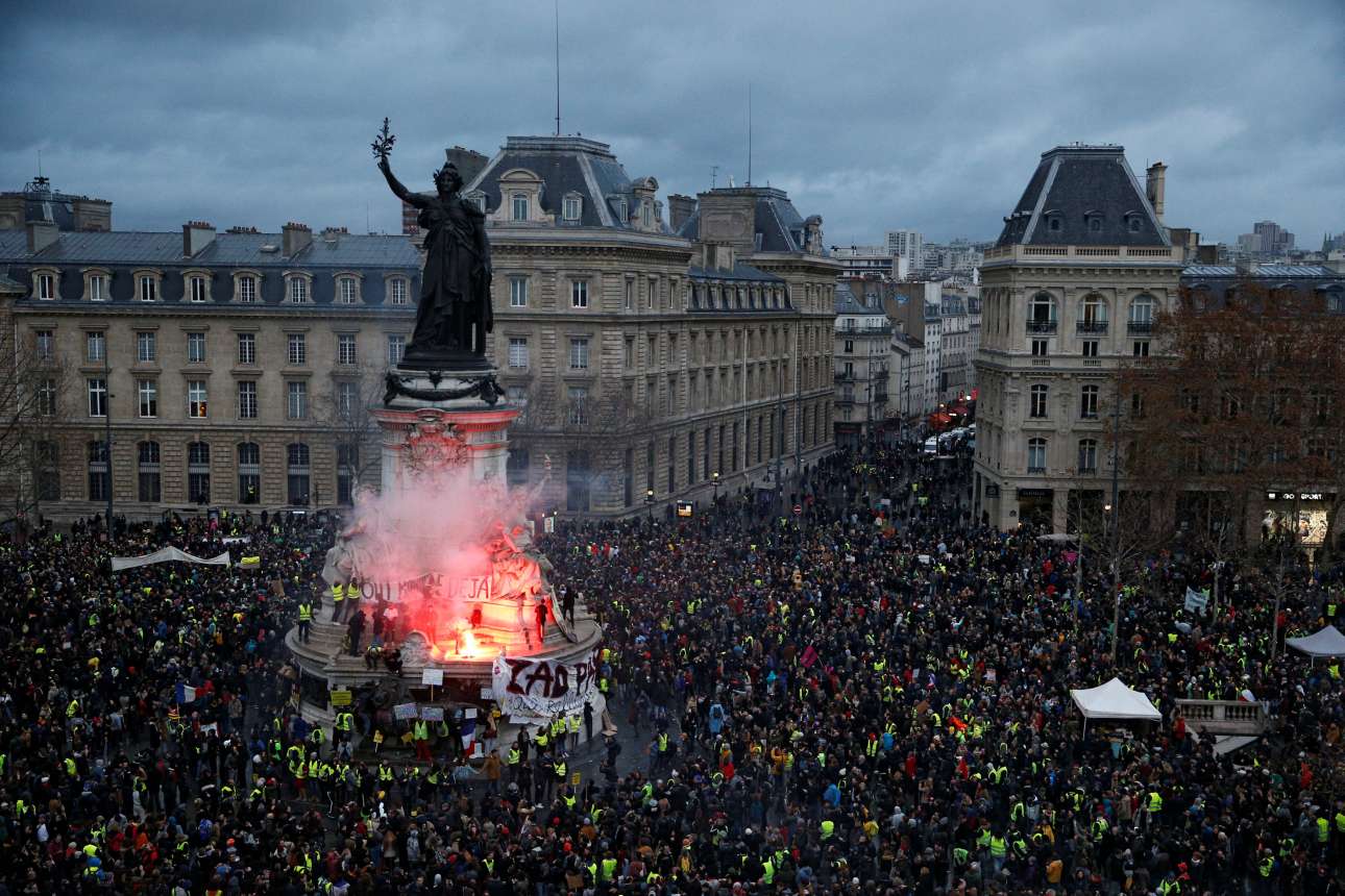 Αμέτρητοι διαδηλωτές, δεκάδες χιλιάδες αστυνομικοί με βαριά οχήματα, τα μνημεία, όπως ο Πύργος του Αϊφελ κλειστά, λουκέτα και σε μουσεία και καταστήματα. Δύο εβδομάδες πριν από τα Χριστούγεννα το σκηνικό στη γαλλική πρωτεύουσα κάθε άλλο παρά εορταστικό ήταν. Ο πρωθυπουργός Εντουάρ Φιλίπ είπε ότι πρέπει «να ξαναϋφάνουμε την ενότητα». Ο Εμανουέλ Μακρόν παρέμεινε και πάλι σιωπηλός μπροστά στη μεγαλύτερη κρίση της προεδρικής θητείας του…