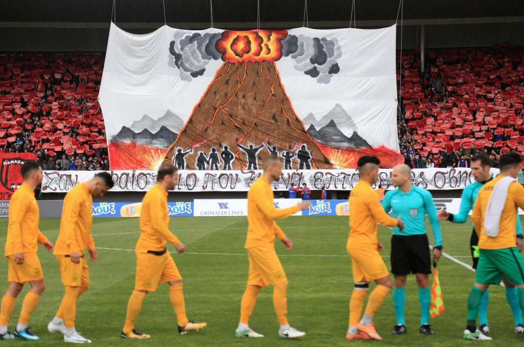 Η εικόνα του κατάμεστου από κόσμο γηπέδου και του γιγάντιου κορεό που έγραφε «Σαν ηφαίστειο που ξυπνά επτά γενιές σβηστό» στην κεντρική εξέδρα με αιχμαλώτισε μπροστά στην τηλεόραση. Ηταν το ντέρμπι κορυφής της Φούτμπολ Λιγκ, όμως το σκηνικό του παρέπεμπε σε ευρωπαϊκό αγώνα. Με γυναικόπεδα στις κερκίδες και περίπου 600 οπαδούς της φιλοξενούμενης ομάδας μεταξύ των θεατών. Το στερητικό σύνδρομο από την έλλειψη της Σούπερ Λιγκ εξαφανίστηκε με τις πρώτες ματιές στη μετάδοση της ΕΡΤ3.