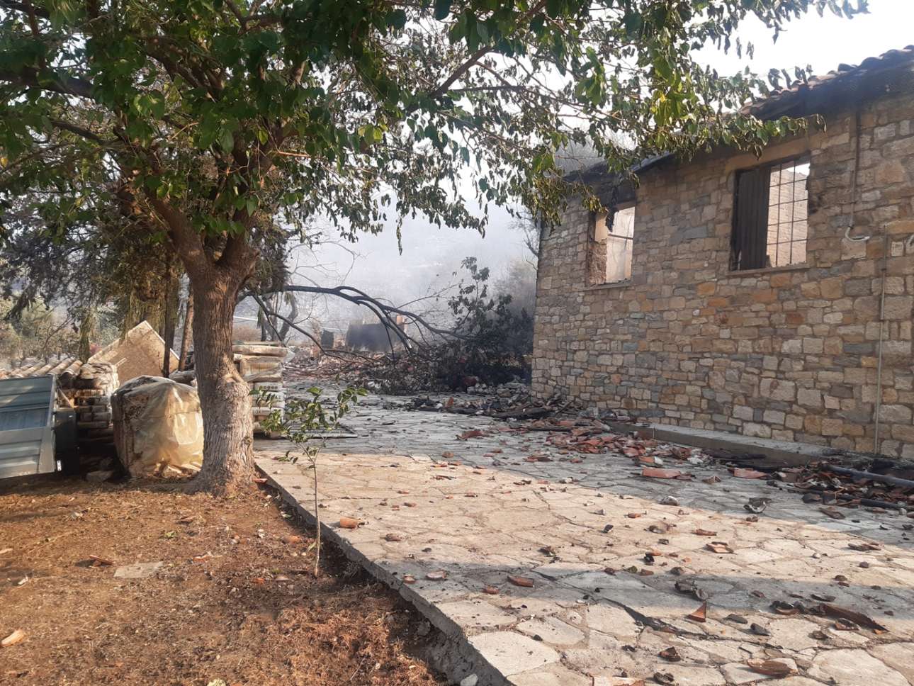 • Τα αρχαία αρχιτεκτονικά κατάλοιπα δεν έχουν υποστεί εμφανή ζημιά, καθώς ο χώρος ήταν πολύ προσεκτικά αποψιλωμένος. Σε δύο σημεία του χώρου, και στο ρέμα που διέρχεται το ανατολικό τμήμα του χώρου, όπου δεν υπάρχουν αρχαιολογικά κατάλοιπα, κάηκε η χαμερπής βλάστηση, όπως και ορισμένα δέντρα και η βλάστηση στην ακρόπολη, του αρχαίου οικισμού. Δεν επιχειρήθηκε προσέγγιση στην ακρόπολη, λόγω του φόβου αναζωπυρώσεων.