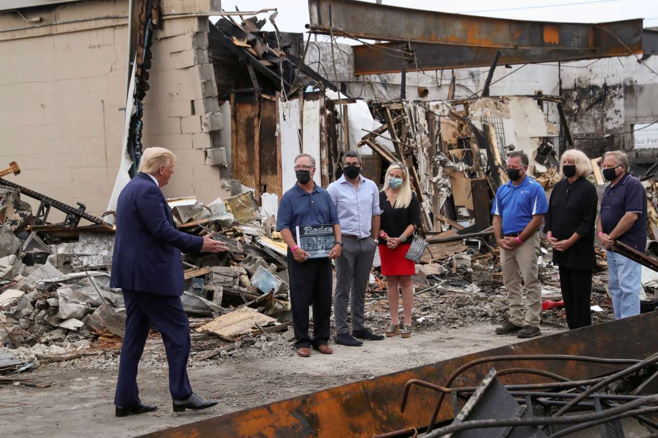 Λάδι στην φωτιά των παθών στην Κενόσα του Ουισκόνσιν έριξε ο Ντόναλντ Τραμπ που επισκέφτηκε, χωρίς να είναι ιδιαίτερα επιθυμητός από όλους τους κατοίκους ή τις Αρχές, την πόλη που έχει γίνει εστία σφοδρών επεισοδίων.