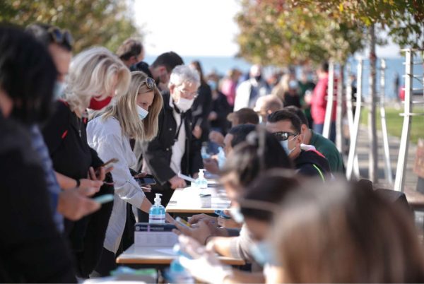 Eνα βήμα πριν από το lockdown η Θεσσαλονίκη λόγω «έκρηξης» των κρουσμάτων κορονοϊού και από νωρίς το πρωί της Πέμπτης εκατοντάδες πολίτες σχημάτιζαν ουρές για να κάνουν rapid test.