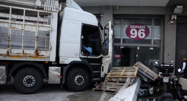 Τρομακτικό τροχαίο στην Πειραιώς: φορτηγό «καρφώθηκε» σε κατάστημα [εικόνες & βίντεο]