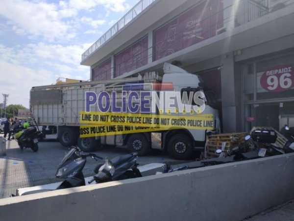 Πανικός προκλήθηκε το μεσημέρι της Τρίτης στην οδό Πειραιώς, στο ύψος του Ταύρου, όταν φορτηγό εξετράπη της πορείας του και παρασύροντας τα πάντα στο πέρασμά του, καρφώθηκε σε κατάστημα εταιρείας κούριερ.