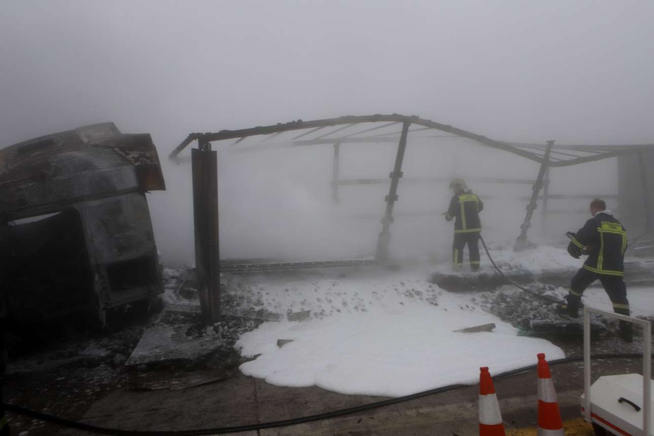 Μετά την πρόσκρουση, στα οχήματα ξέσπασε φωτιά με αποτέλεσμα δύο επιβάτες του μεσαίου οχήματος να εγκλωβιστούν και να απανθρακωθούν. Οι υπόλοιποι επιβαίνοντες στα οχήματα τραυματίστηκαν ελαφρά.