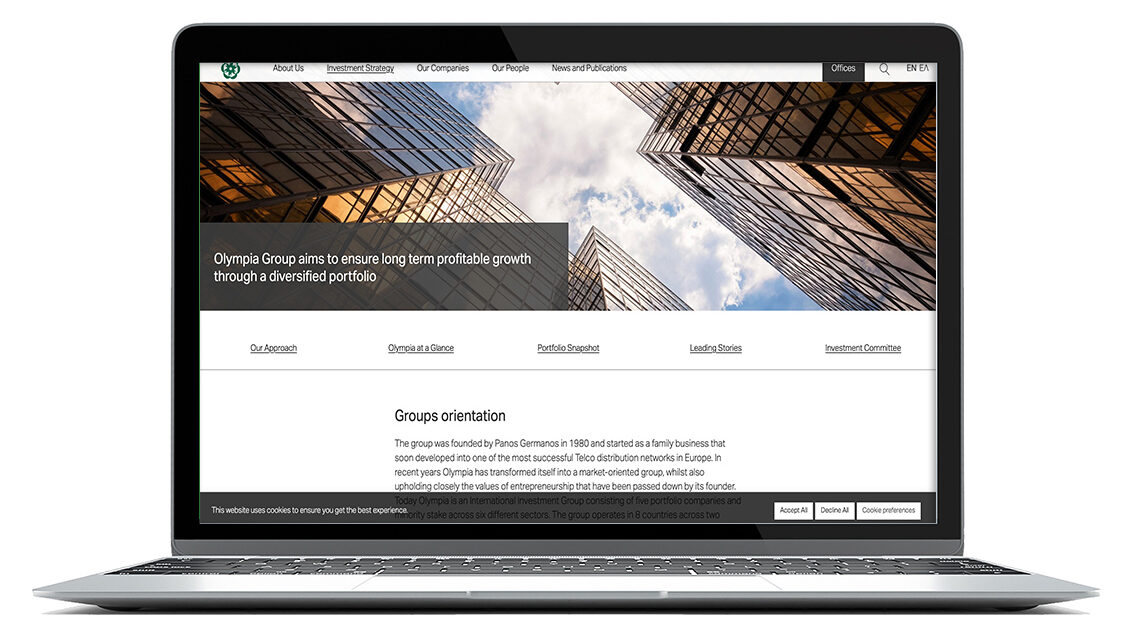 Η νέα ιστοσελίδα του Ομίλου Olympia φωτίζει τη νέα εποχή του, ως ένας Διεθνής Επενδυτικός Όμιλος που έχει ως αποστολή να δημιουργεί μακροπρόθεσμη αξία για τις εταιρίες του, μέσα από μία φιλοσοφία επενδύσεων που στοχεύει στην ανάπτυξη εταιριών-ηγετών στους κλάδους τους και, παράλληλα, να συνεισφέρει θετικά σε όλα τα ενδιαφερόμενα μέρη των κοινοτήτων στις οποίες δραστηριοποιείται.