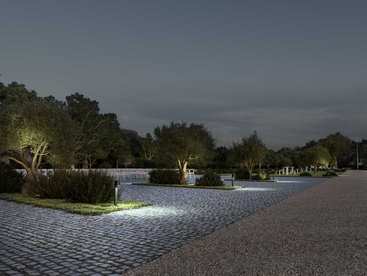 H μελέτη φωτισμού, σύμφωνα με την ίδια ανακοίνωση, έχει σκοπό την ασφαλή κίνηση των επισκεπτών, την ανάδειξη των εξωτερικών διαδρομών, της κεντρικής πλατείας και της φύτευσης.