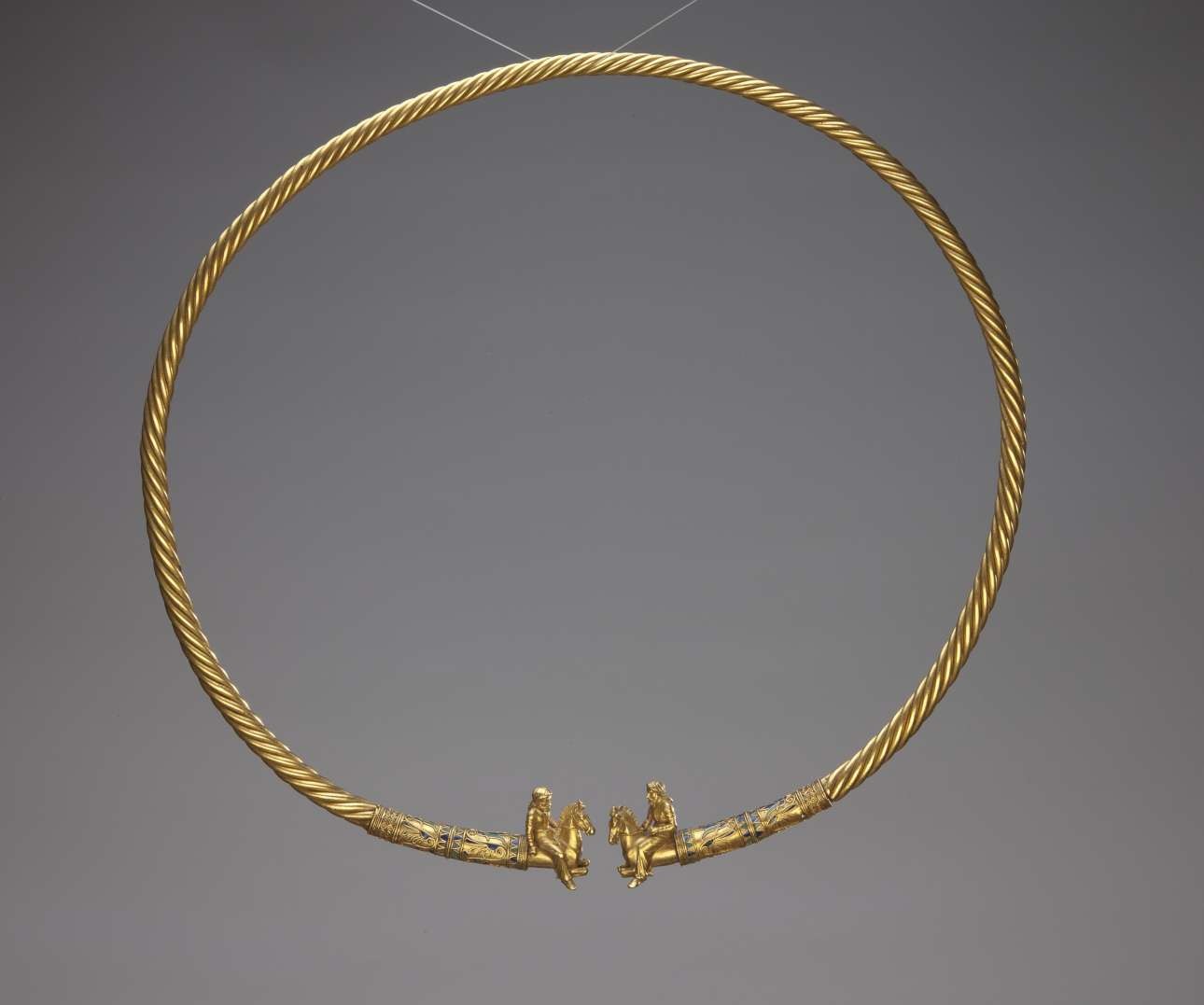 Δύο αγγεία και ένα κόσμημα. Ολόχρυσα, διακοσμημένα με κεφαλές Μέδουσας και μορφές σκυθών ιππέων. Αριστουργήματα που αποτελούν μέρος σκυθικού ταφικού συνόλου του 4ου αιώνα π.Χ. Από σήμερα περιμένουν το κοινό στο ισόγειο του Νέου Μουσείου της Ακρόπολης. Τα αριστουργήματα αυτά της μεταλλοτεχνίας εντοπίστηκαν το 1830 στον βασιλικό τύμβο Kul Oba στην Κριμαία.