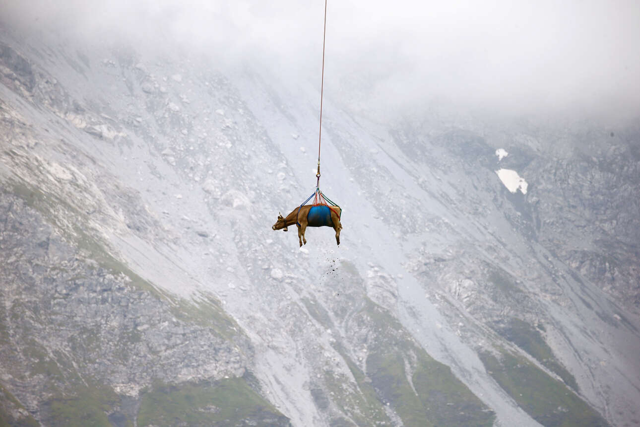 Στην Ελβετία η μεταφορά του κοπαδιού στα χειμαδιά δεν είναι αυτό ακριβώς που έχουμε κατά νου στην Ελλάδα. Πάντως, αυτό εικονίζεται στη φωτογραφία. Τώρα αν η αγελάδα έχει υψοφοβία...