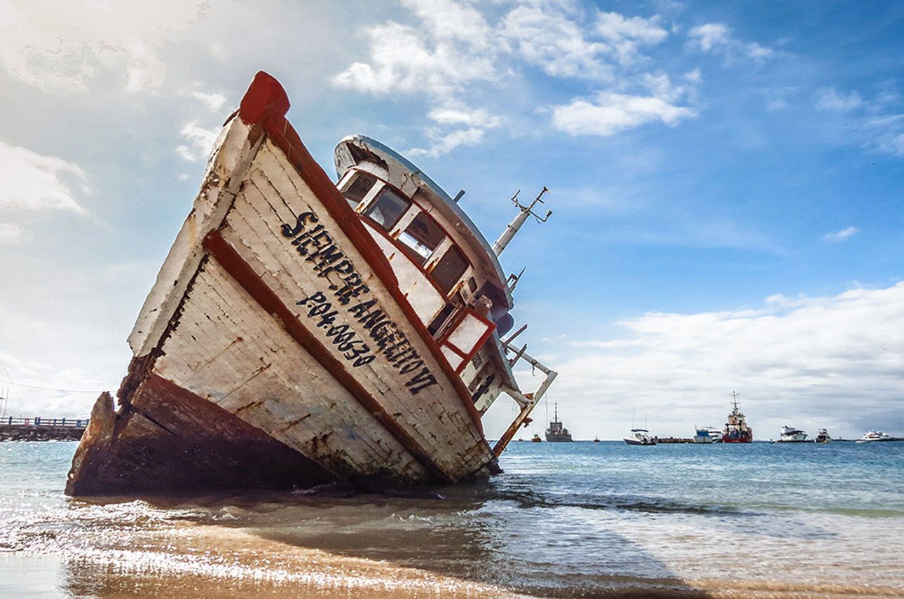 Τρίτη θέση και Πρώτη Θέση στην κατηγορία «Ανθρωπος στο Αρχιπέλαγος». Ενα εγκαταλειμμένο πλοίο στις ακτές του νησιού Σαν Κριστομπάλ. Ο φωτογράφος ήθελε να αιχμαλωτίσει την επίδραση που είχε το πέρασμα του χρόνου πάνω στην ομορφιά του σκάφους