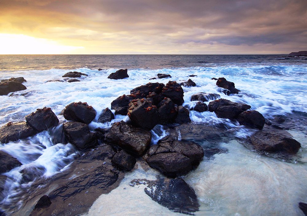 Δεύτερη θέση, κατηγορία «Τοπίο». Ξημερώνει στη Μοσκέρα και τα καβούρια συγκεντρώνονται πάνω στα ηφαιστειογενή βράχια του νησιού