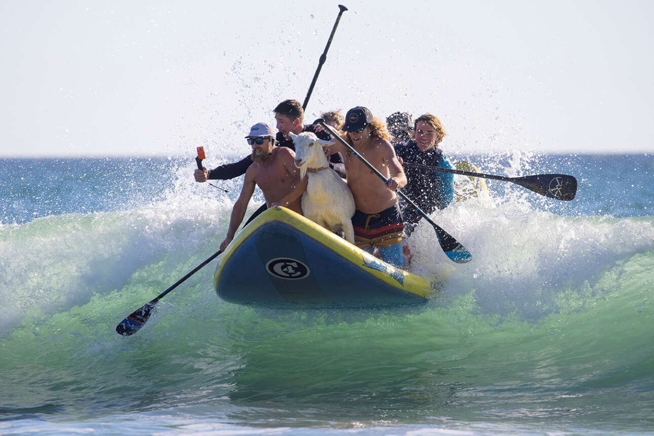 Λίγο κουπί, λίγη θάλασσα κι η κατσίκα μου... Οταν όλοι αγωνιούν για το τέλειο κύμα το συμπαθές τετράποδο αναρωτιέται με τι σόι θηλαστικά έμπλεξε