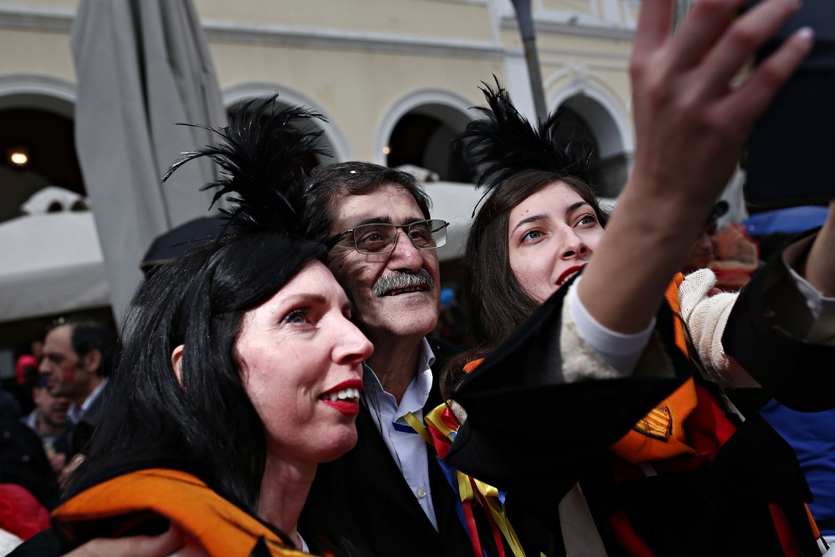 Η βροχή που έπεφτε στην Πάτρα από το μεσημέρι της Κυριακής δεν πτόησε επισκέπτες και καρναβαλιστές να βγουν στους δρόμους της πόλης – άλλοι συμμετείχαν ζωηρά στην παρέλαση και άλλοι παρακολουθούσαν κάτω από τις στοές των πεζοδρομίων της οδού Κορίνθου. Ο βασιλιάς καρνάβαλος, η βασίλισσα με τη συνοδεία της, τα πληρώματα του «κρυμμένου θησαυρού»… Σχεδόν 30.000 καρναβαλιστές έτρεξαν, τραγούδησαν και χόρεψαν και η παρέλαση ολοκληρώθηκε λίγο πριν τις 7 το απόγευμα.